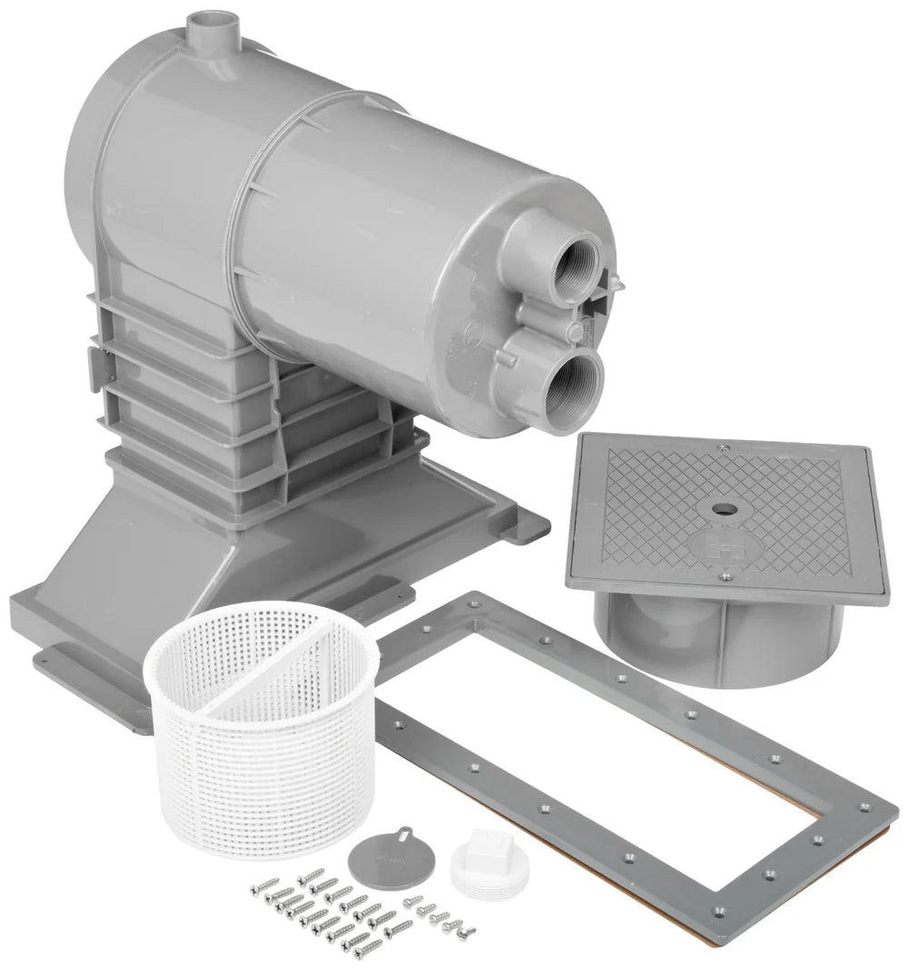 Skimmer kit included with returns, drains, gaskets, spillway door, square lid and basket.